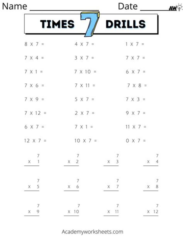 Are there any worksheets for 7 times table?
