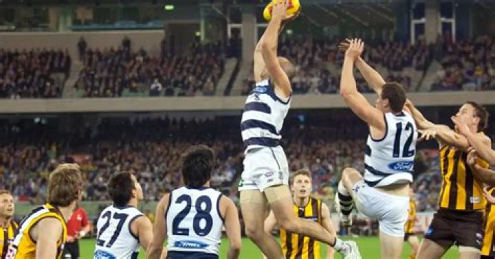 In Aussie Rules Football the ball can be kicked or hand passed and not thrown and the ball needs to be kicked through the middle of the four goal posts for any points to be scored. Unlike rugby, players cannot throw the ball! Goals can only be scored when a player from the attacking team kicks the ball.