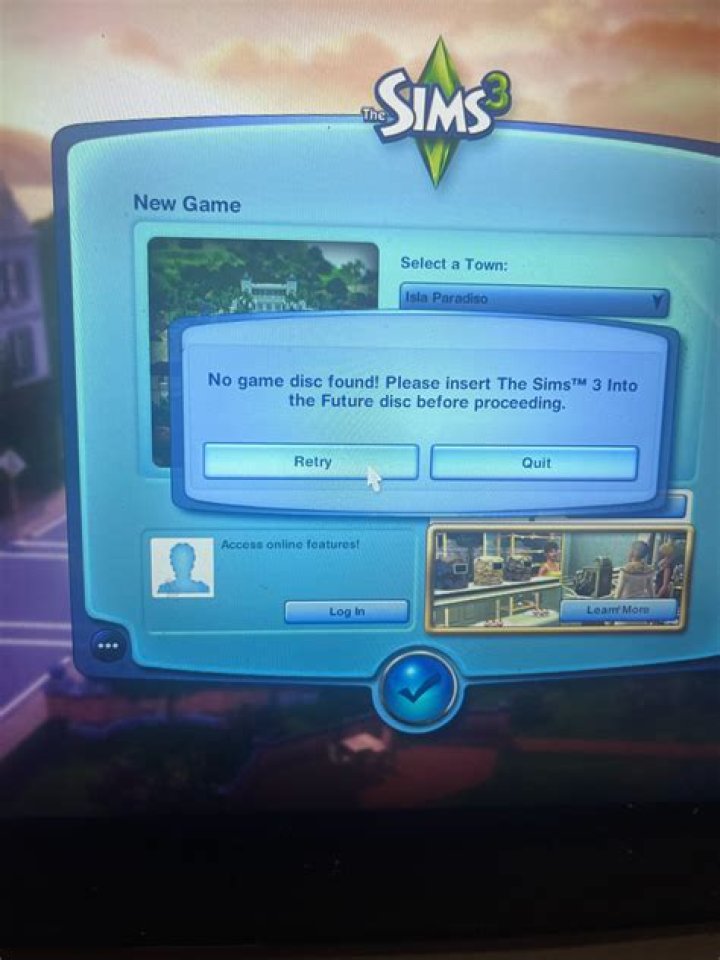 What to do when Sims 3 says no game disc found?